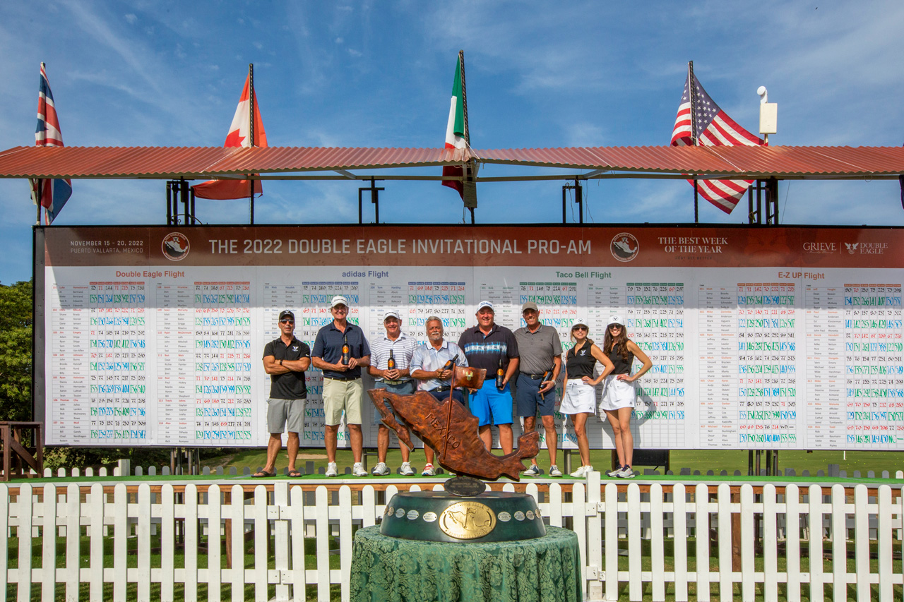 The Double Eagle Invitational Pro-Am is a five-person team event, each consisting of an invited professional and four amateur partners. The professional plays for a total of $100,000 in prize money, based on the individual 72- hole competition and the position of the team at the end of the tournament. Each team plays two rounds on both the Nicklaus and Weiskopf Course at the Vista Vallarta Golf Club. The field is divided into four flights. Tournament awards are presented to the winners in each flight, along with the overall team championship.